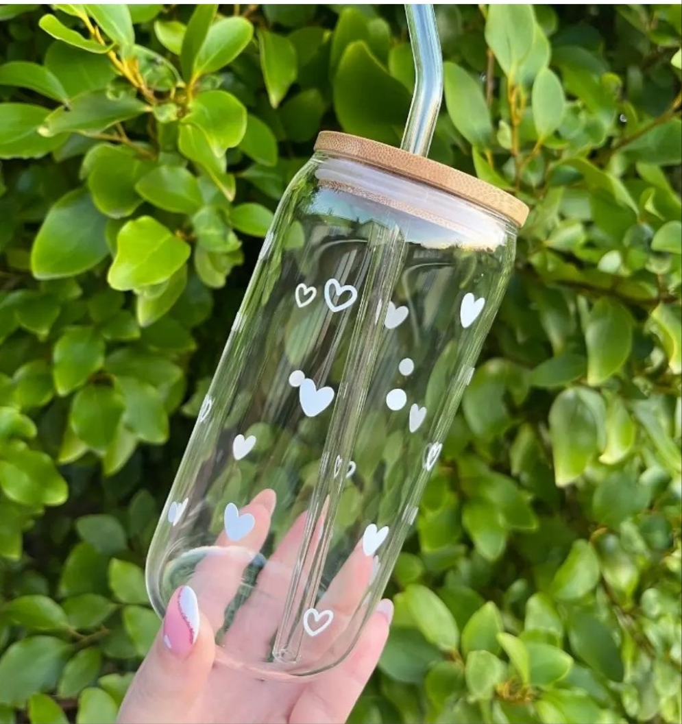 Customized glass jar hearts design