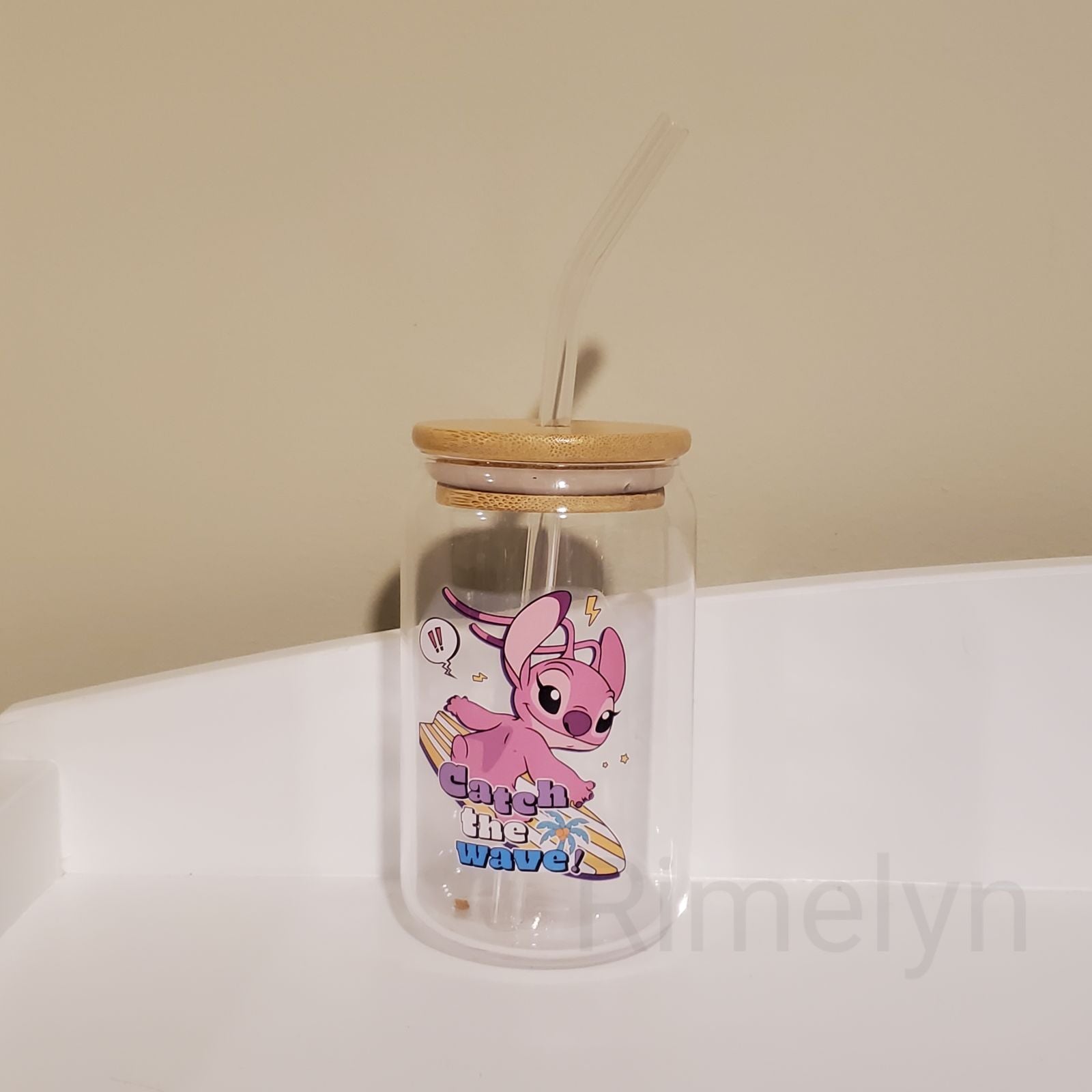 Stitch and angel jars with bamboo lid